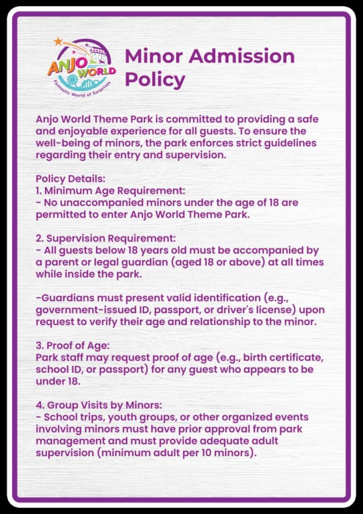 Pets are not allowed entry into Anjo World Theme Park.